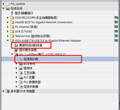 借助TIA Portal軟件,也可在“在線訪問”中進(jìn)行固件更新,步驟如下:1. 連接PLC后,在博途項(xiàng)目樹中展開“在線訪問”,搜索到需要更新的設(shè)備,進(jìn)入“在線和診斷”顯示下選擇對(duì)應(yīng)文件并運(yùn)行,即是對(duì)CPU顯示屏更新固件: